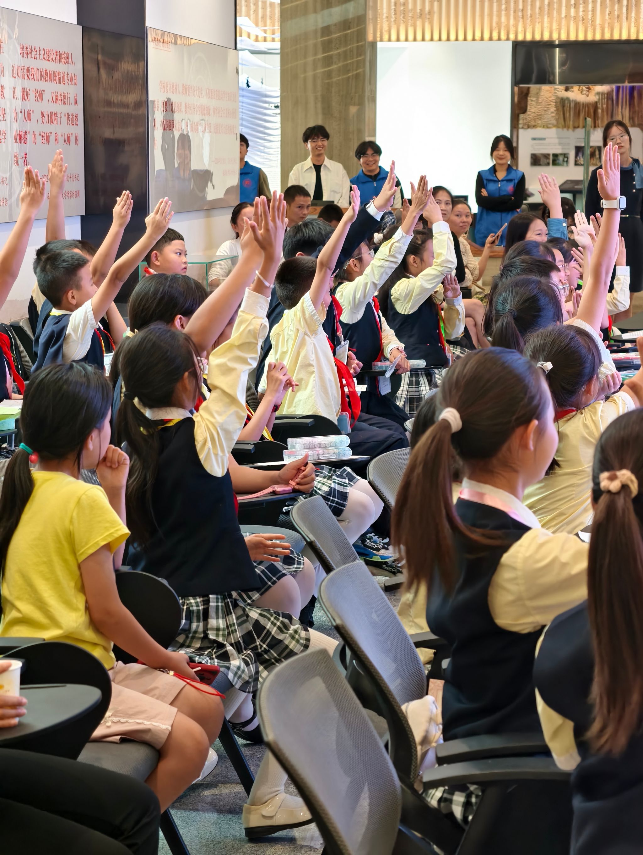 在知识竞答环节,小小讲解员们很快进入抢答模式,争先恐后的举手,现场氛围十分活跃。抢答正确的小小讲解员分别领取了相应的奖品。